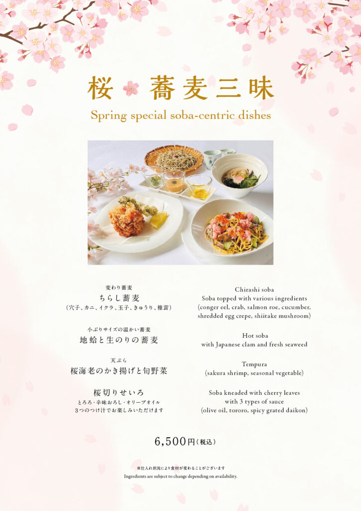 海鮮がのった豪華な「ちらし蕎麦」、蛤の温蕎麦、桜の葉を練り込んで打った香り高い「桜切り」など春の訪れをお愉しみいただけます。