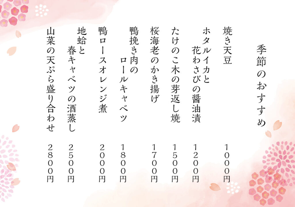 【ディナー限定】季節のおすすめ